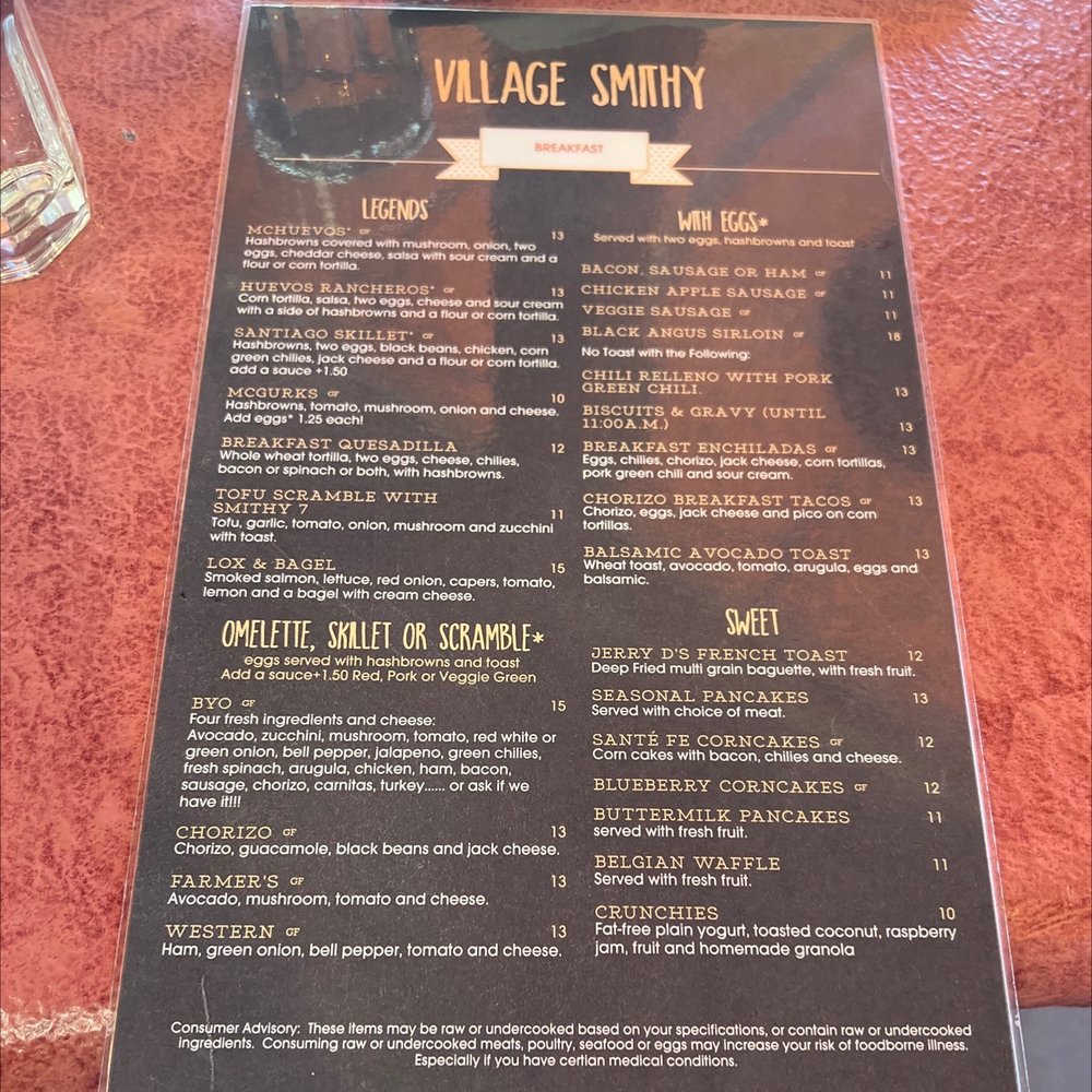 Welcome to Village Smithy Restaurant, a beloved breakfast and brunch spot nestled in the heart of Carbondale, CO. This establishment blends casual charm with a touch of class, offering a welcoming atmosphere that feels like home. Known for its delicious food, the menu highlights include unique dishes like the lemon loaf French toast and the irresistible Santiago with green chile salsa.
